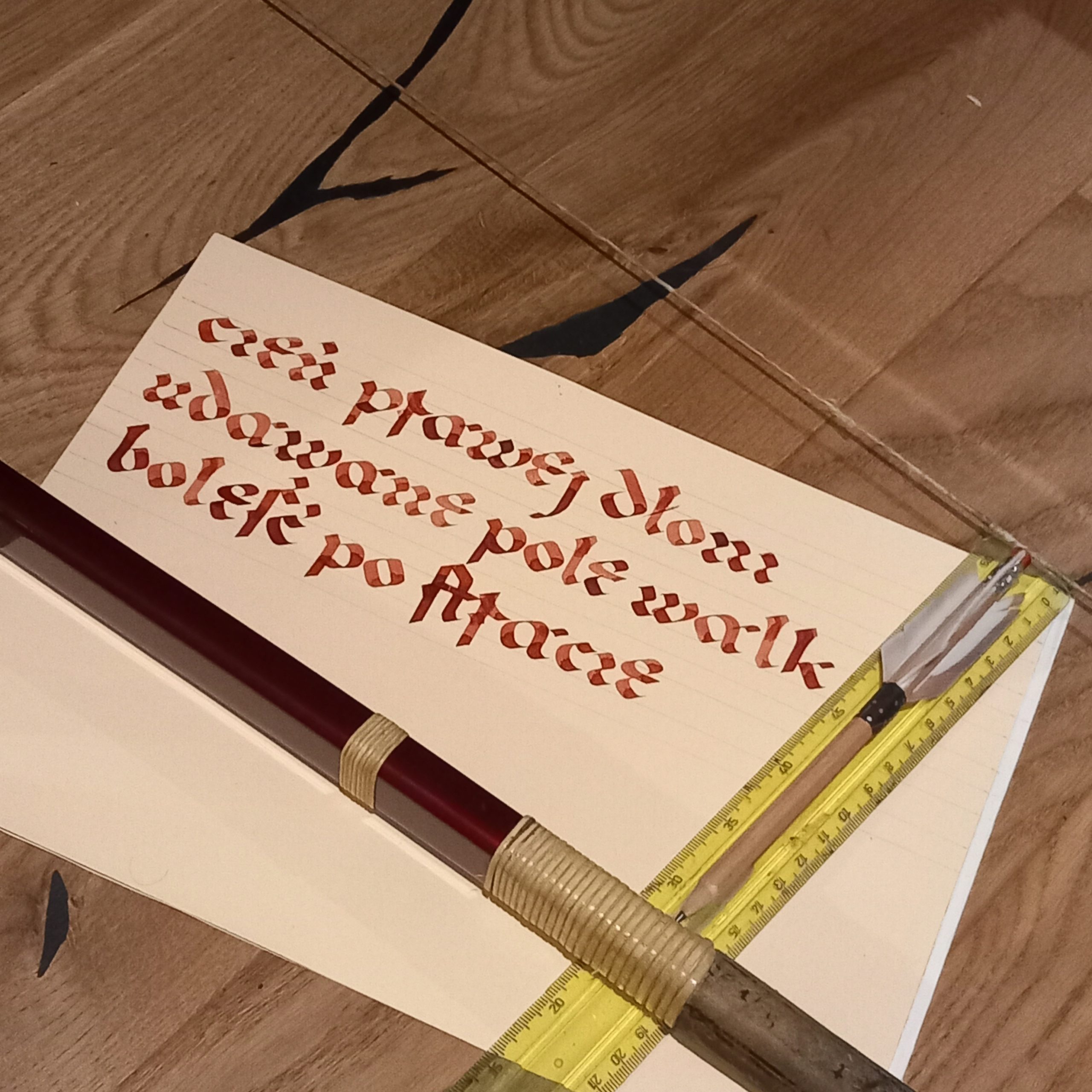 Po przerwie demonstracja czegoś zupełnie nowego… choć trudno mówić o czymś nowym, gdy kopiujemy to z pola bitwy, prawda? Czyli to nie ściśle Honda-ryu, ale że kilka osób reprezentujących tę szkołę, w tym Toshizane Honda, założyciel, lubiło badać jak to kiedyś bywało, to się nam w Seikyukai przemyca czasem takie ciekawostki. Do rzeczy. Kudaya to technika strzelania bardzo krótkimi strzałami, kilkanastocentymetowymi. Łuk jest standardowych wymiarów, więc potrzebny był trik, który tu miał kształt bambusowej rynienki o długości ponad metra. Była przywiązana do prawej dłoni i naciągało się ją razem z zamocowaną na cięciwie strzałą. W momencie zwolnienia cięciwy, rynna zostawała na miejscu, a strzała podążała wzdłuż niej, zachowując nadany rynną kierunek lotu. Po co to? Są dwie teorie. Jedna jest taka, że łucznikom czasem kończyły się strzały, a po polu bitwy walało się ich mnóstwo. Dzięki tej technice, nawet złamane strzały mogły być odesłane w stronę wroga. Druga teoria jest ciut bardziej interesująca. Tych krótkich strzał, przez ich rozmiar, nie widać w locie. Co czyni je świetnym narzędziem do niespodziewanego zdejmowania z pola bitwy istotnych celów. Warto przypomnieć, że większość pieszych łuczników nie miała za zadanie wprost eliminować wrogów — mieli prowadzić ogień zaporowy, trzymający oddział przeciwnika na dystans. Ktoś tam zwykle znajdował się na końcu toru lotu strzały, ale nie był to nikt konkretny. Byli też łucznicy, których celem było eliminowanie określonych celów — jak się taki pozwala zidentyfikować monami czy innymi ozdobami hełmu, to czemu nie skorzystać okazji. Kudaya mogła być jedną z używanych do tego technik. Jak się naocznie przekonaliśmy po strzałach senseia i kilku ochotników, po hanare [zwolnienie cięciwy] pozostawało tylko wypatrywanie gdzie wbiła się strzałka (lub gdzie spadła, jeżeli trafiła w siatkę). Jednak z krótkimi, szybkimi strzałami jest taki problem, że trafienie w felerne, mocno wysłużone miejsce na piance powoduje, że strzała wbija się dużo głębiej niż wynosi jej długość, znikając od razu z pola widzenia. Czy też nigdy się w nim tak naprawdę nie pojawiając. W skrócie, jedną z czterech strzałek straciliśmy. W optymistycznej wersji: zostawiliśmy klubowi Tametomo na przechowanie w piance, aż się pianki same z siebie rozpadną lub jakaś strzała przypadkiem wybije kudayę z drugiej strony.